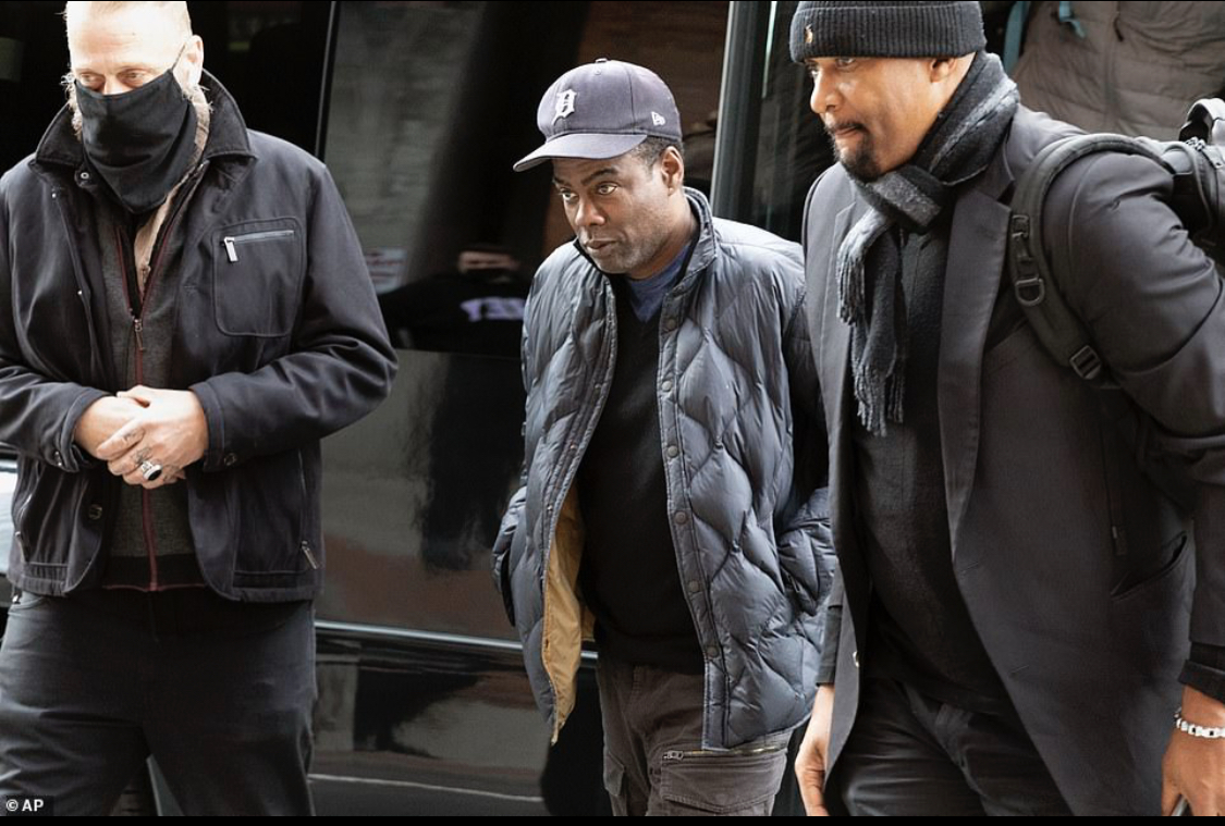 Chris Rock leaves Wilbur Theatre in Boston after performing two shows Wednesday night. The uninhibited comedian remained uncharacteristically tight-lipped about being slapped by Will Smith during Sunday’s Academy Awards show