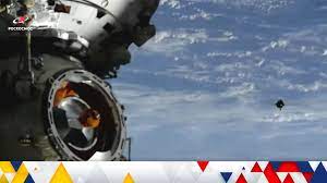 The three spacemen flew to the international space station in yellow and blue suits on board the Soyuz MS21 space craft from Kazakhstan.