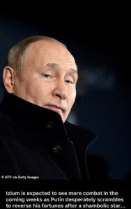 Izium is expected to see more combat in the coming weeks as Putin desperately scrambles to reverse his fortunes after a shambolic start to his invasion of Ukraine.