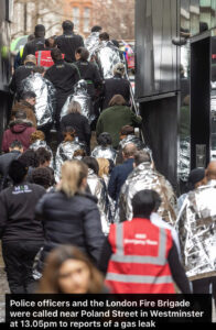 Police officers and the London Fire Brigade were called near Poland Street in Soho, Westminster at 13.05pm to reports of a gas leak.