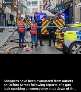 Shoppers have been quickly evacuated from outlets on Oxford Street following reports of a gas leak sparking an emergency shut down of the area.