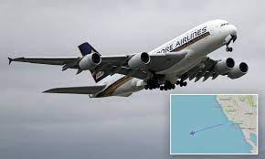 The aircraft, which is flying to Singapore, left the West Coast of the United States before midnight yesterday.