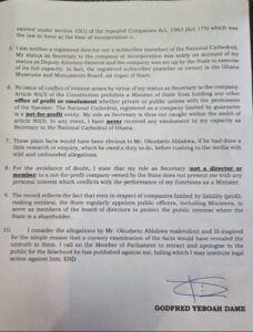 Ablakwa had made claims that the AG was the Secretary to the National Cathedral Board, and was also on the board of the Public Procurement Authority which approved designs for the project.