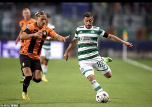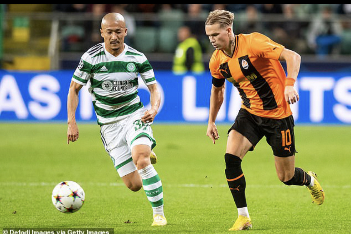 Shakhtar already looked rattled. A neat interchange between Greg Taylor and Haksabanovic down the left saw the latter roll the ball at pace across the six yard box. The lurking Furuhashi was only inches away from converting.