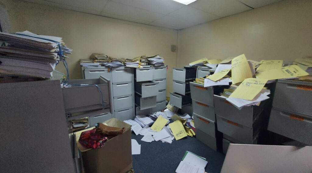 The nation’s attorney general, John Muria, posted images on social media of office files spilled from large metal filing cabinets.