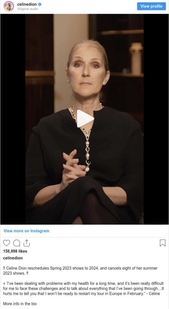 On Thursday, Dion reassured her fans that she had “a great team of doctors working alongside me to help me get better” while her “precious children” were “supporting me and giving me help”.