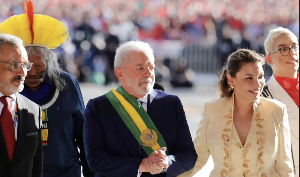 Lula strode up the ramp into the palace flanked by eight representatives of Brazil’s diverse society including one of its most revered Indigenous leaders, Raoni Metuktire, a rap DJ and metalworker and a 10-year-old child.