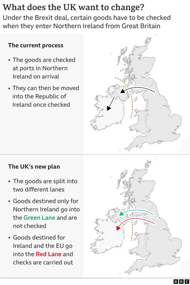 In short, it wants to create so-called red lanes and green lanes for goods imported from the rest of the UK into Northern Ireland.