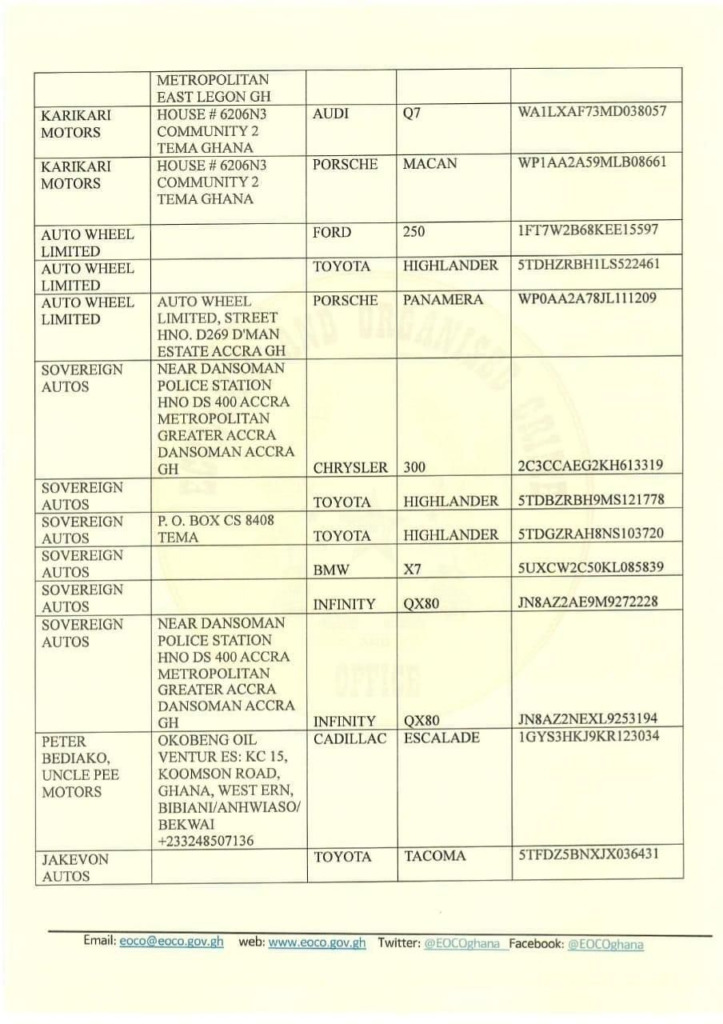 Owners of these vehicles must report to the EOCO offices with the needed documents or risk them being totally confiscated in accordance with the law.
