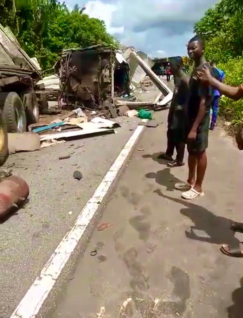 An accident on Saturday afternoon, April 29, 2023, involving an articulator truck and a cargo truck has claimed at least two lives and other life threatening injuries at Anwiafutu junction on the Elubo road in the Western Region.