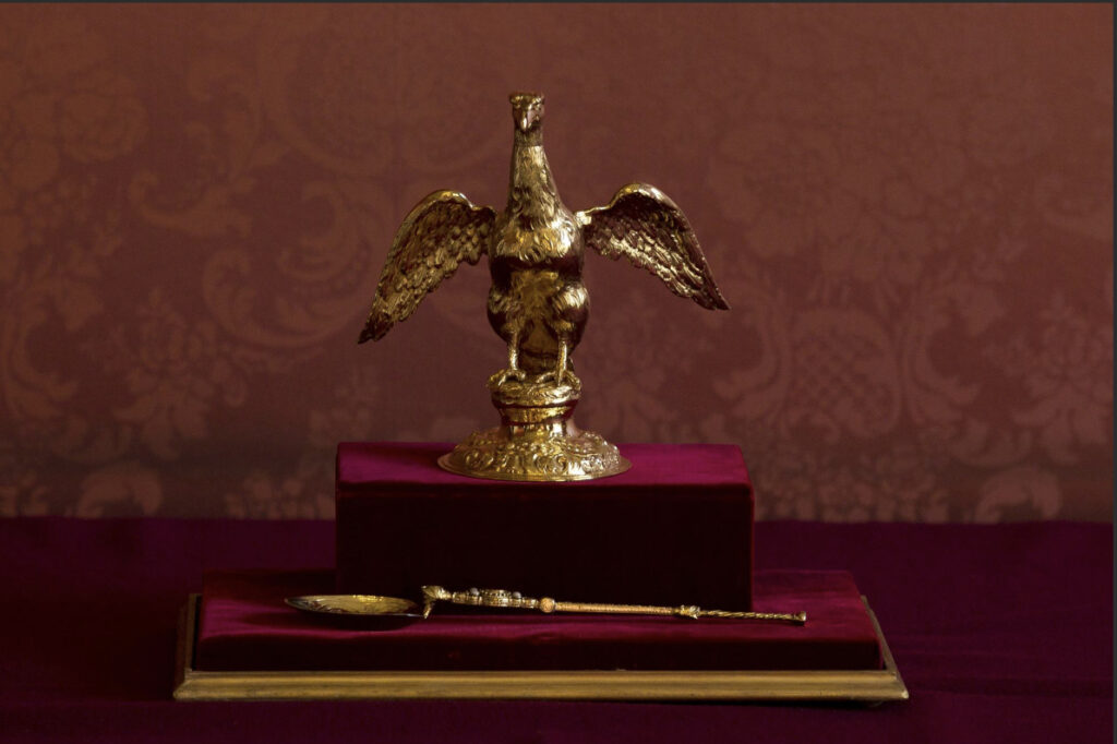 The spoon is central to the most sacred part of the coronation ceremony, when the Archbishop of Canterbury will pour holy oil from an eagle-shaped ampulla, or flask, into the spoon and then rub it on the king’s hands, breast and head.