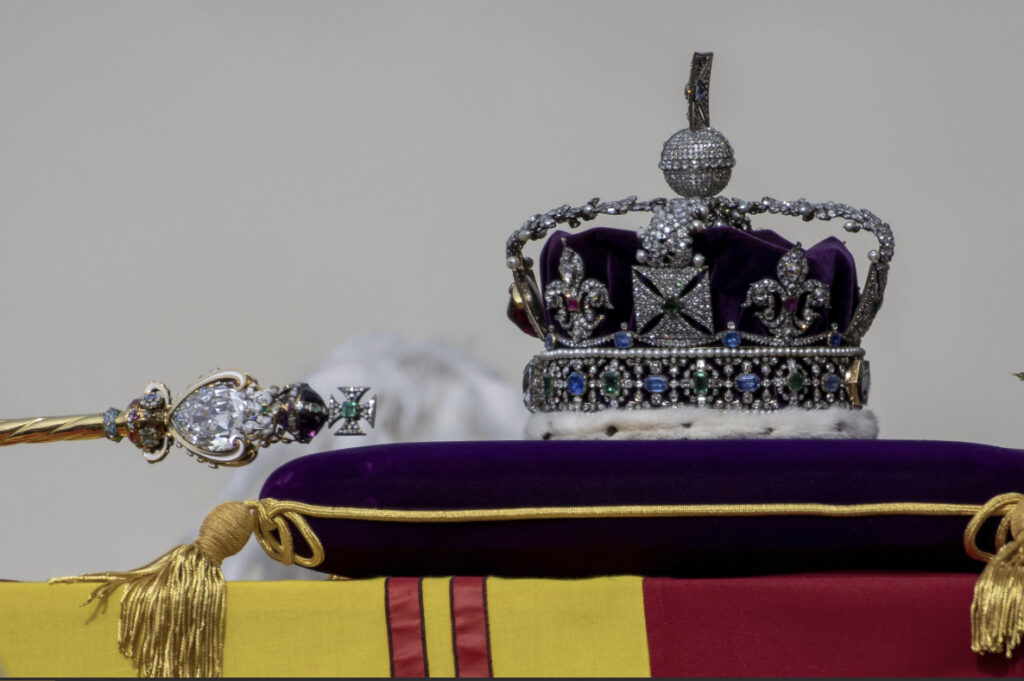 Cullinan I, a huge drop-shaped stone weighing 530.2 carats, is mounted in the Sovereign’s Sceptre with Cross. On Saturday, the scepter will be handed to Charles as a symbol of his temporal power.