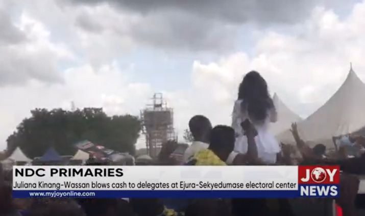 Supporters of the National Democratic Congress attending the party’s primaries at Ejura Sekyedumase were excited after one of the aspirants showered money on them at the voting grounds on Saturday.