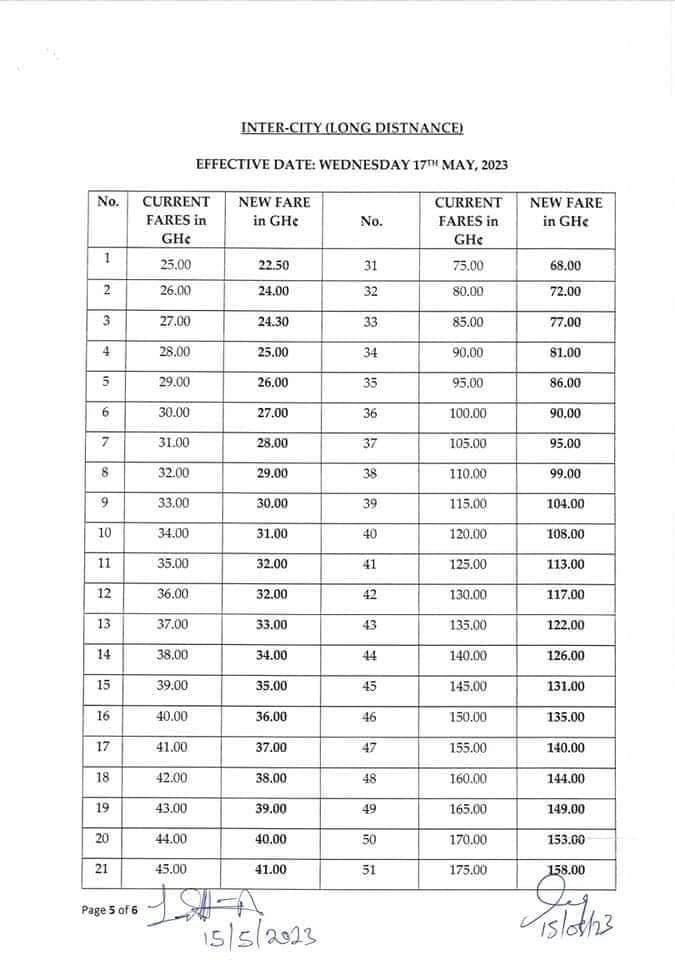 Users of public transport will enjoy a 10 percent reduction in fares by 10% effective Wednesday, May 17, 2023.
