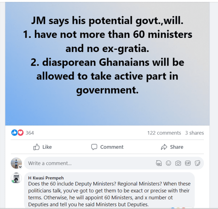 He said this while commenting on a Facebook post made by the Founding President of Imani Africa Franklin Cudjoe who had posted the promises on his page.
