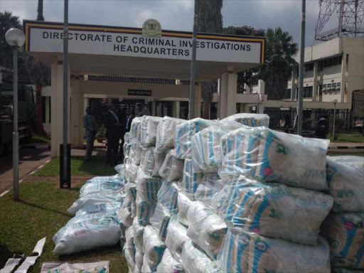 More than 1,417-50 kilogram bags were discovered in Beder Stores in Eastleigh and Paleah Stores on the Ruiru bypass.