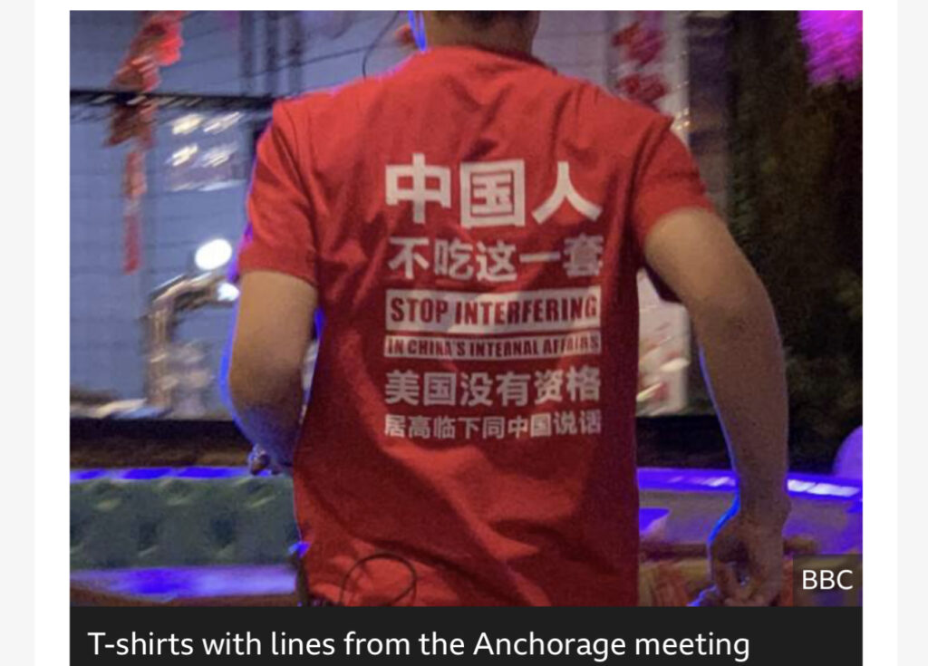 Chinese nationalists ended up using some of the barbs from Beijing’s representatives and putting them on t-shirts, bags and even beer bottles as a kind of “take that” to the US.