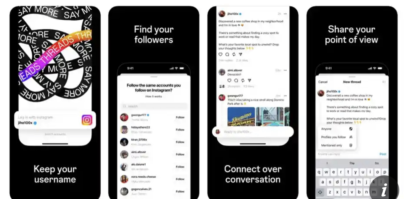 Screenshots suggest people will be able to use their Instagram handle to log in to Threads and follow their existing contacts. The app appears to share a similar user interface to Twitter, with similar features including reposting, liking and allowing users to limit who can reply to posts.