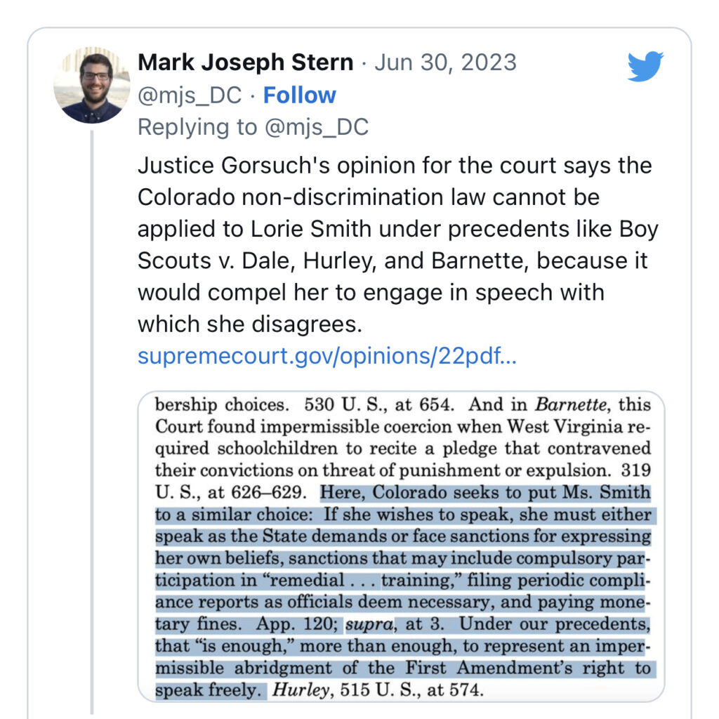 The court ruled 6-3 in favor of a Colorado web designer who argued that she has the right under the First Amendment to refuse to create wedding websites for gay people. Lori Smith, the website designer who brought the case, was never even hired to make a website for a same-sex couple, nor has she ever created a wedding website, as HuffPost points out.