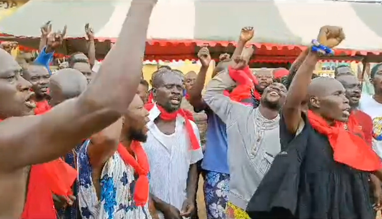 They were clad in red and black attire as they chanted war songs in protest against the police’s action.