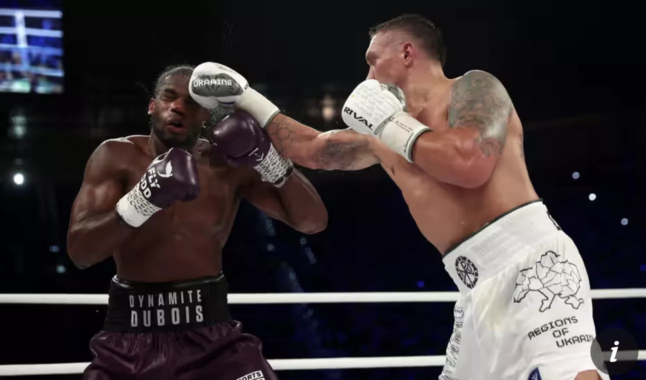 Dubois came after him aggressively as soon as the fight resumed for he could tell that Usyk was troubled. He looked to punish Usyk to the body but in the last minute of a tumultuous round the Ukrainian fought back strongly and drove Dubois against the ropes.