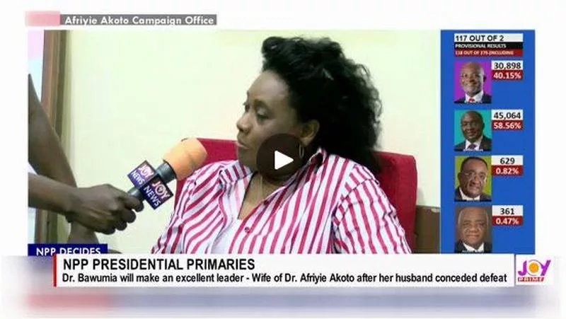 The wife of Dr. Owusu Afriyie Akoto, a flagbearer aspirant for the New Patriotic Party (NPP), has reacted to her husband’s performance in the NPP’s presidential primaries.