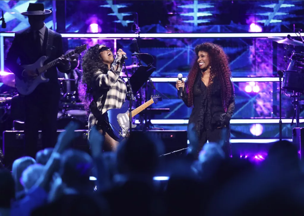 H.E.R., Sia and Common accompanied Khan for a medley of her funky hits that included “I Feel For You,” “Ain’t Nobody,” “Sweet Thing” and “I’m Every Woman,” the latter which brought nearly everyone to their feet.