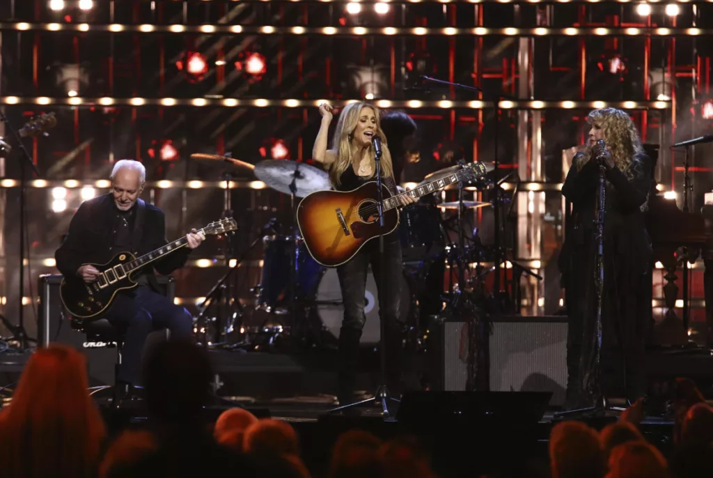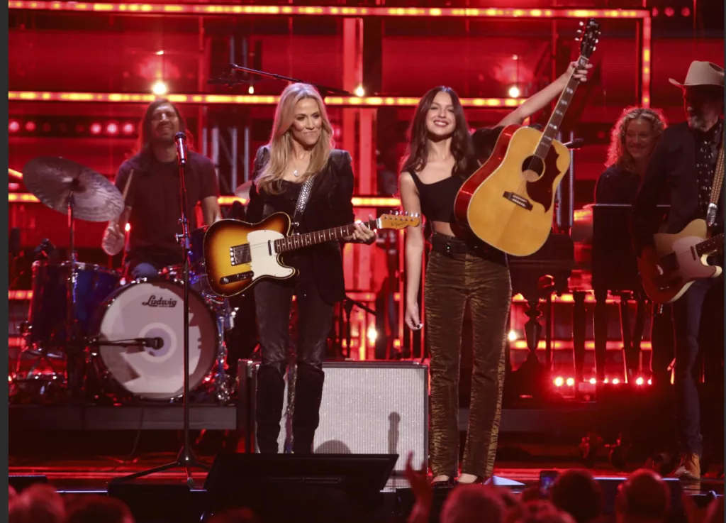 The show kicked off when Crow joined by Rodrigo — both in black — traded verses as they both played guitars. Stevie Nicks later joined Crow for a performance of “Strong Enough” and Peter Frampton came out to help sing “Everyday Is a Winding Road.”