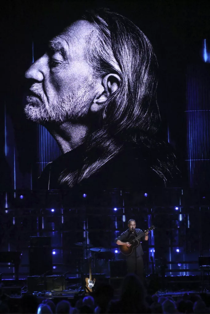 Nelson’s part of the ceremony took a fair chunk of the night, with Dave Matthews playing an acoustic “Funny How Time Slips Away,” and the legend joining Chris Stapleton on “Whiskey River,” dueting with Crow for “Crazy” and then all three musicians combining with Nelson for a rollicking “On the Road Again,” which got a standing ovation.