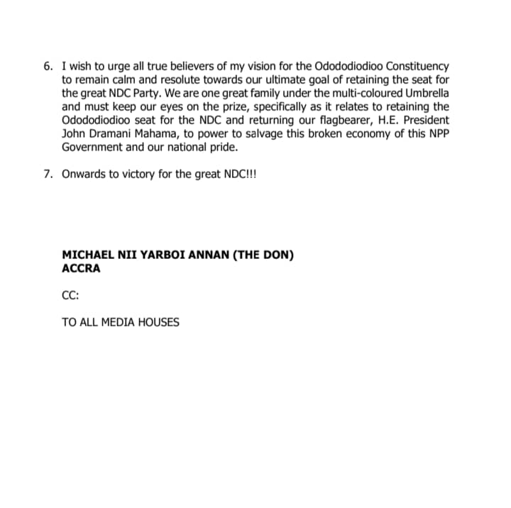The disqualified National Democratic Congress (NDC) parliamentary aspirant in the Odododiodioo constituency, Michael Nii Yarboi Annan, has expressed discontent with the Functional Executive Committee’s (FEC) decision to disqualify him from participating in the NDC Odododiodioo parliamentary primary.