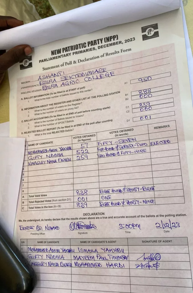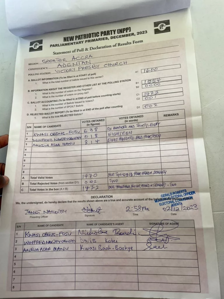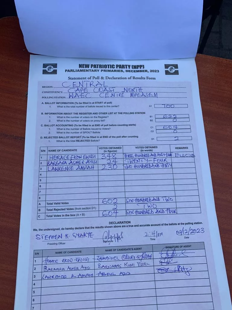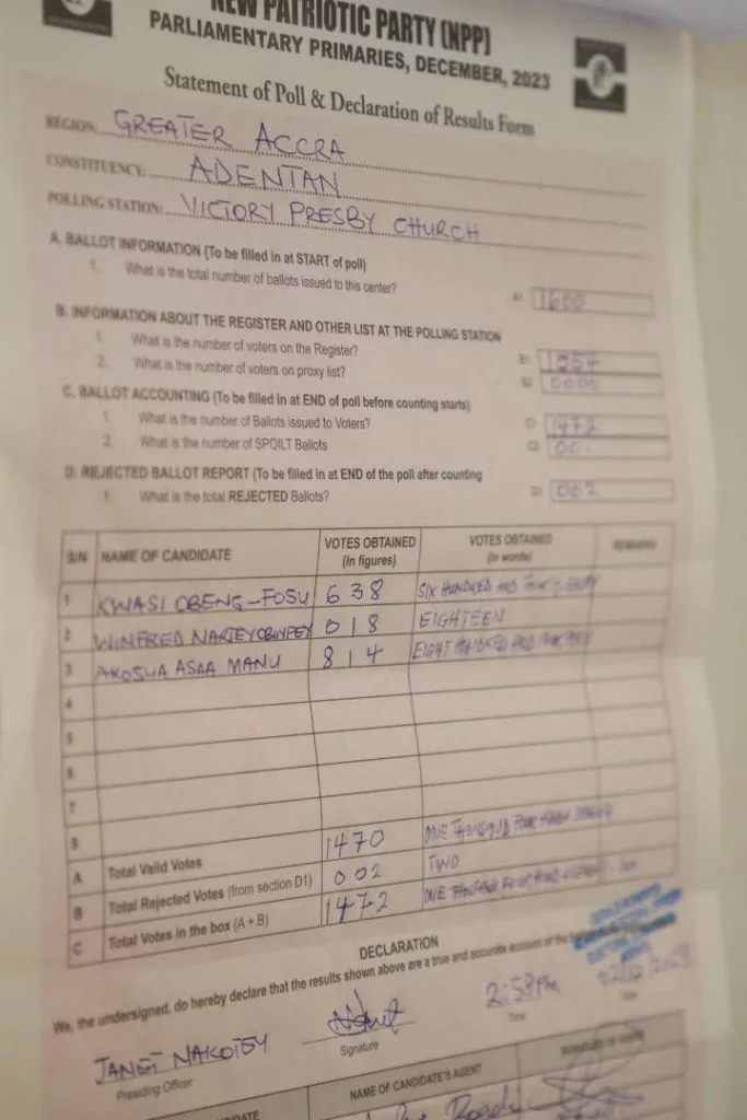 WULENSI CONSTITUENCY NPP PRIMARIES RESULTS,2023.