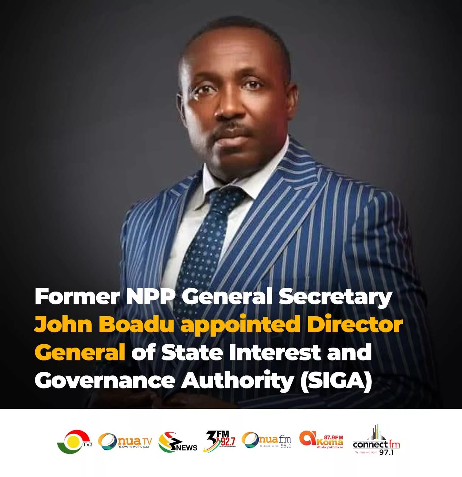 President Akufo-Addo has appointed John Boadu as the Director-General for the State Interests and Governance Authority (SIGA).