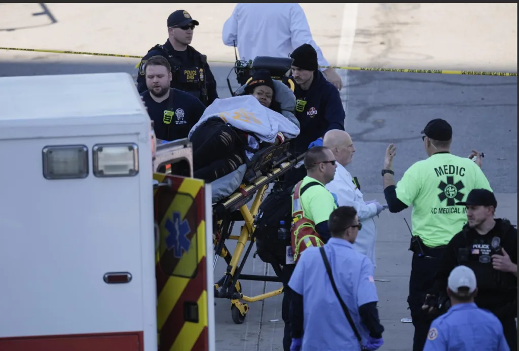 A historic railway station on the edge of downtown Kansas City became the latest backdrop for a mass shooting as gunfire near the end of the Kansas City Chiefs’ Super Bowl celebration sent terrified fans scrambling for cover and left 21 people wounded — including at least eight children — and a mother of two dead.