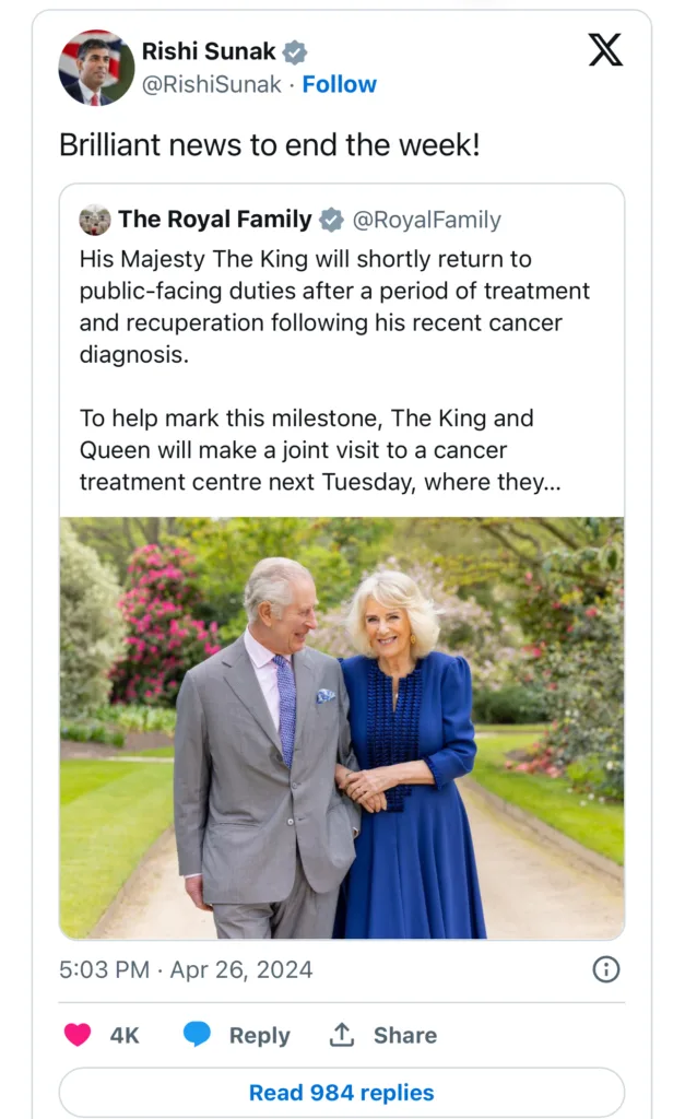 The announcement that the King is doing well will be a morale boost for the family, with both him and the Princess of Wales being diagnosed with cancer.