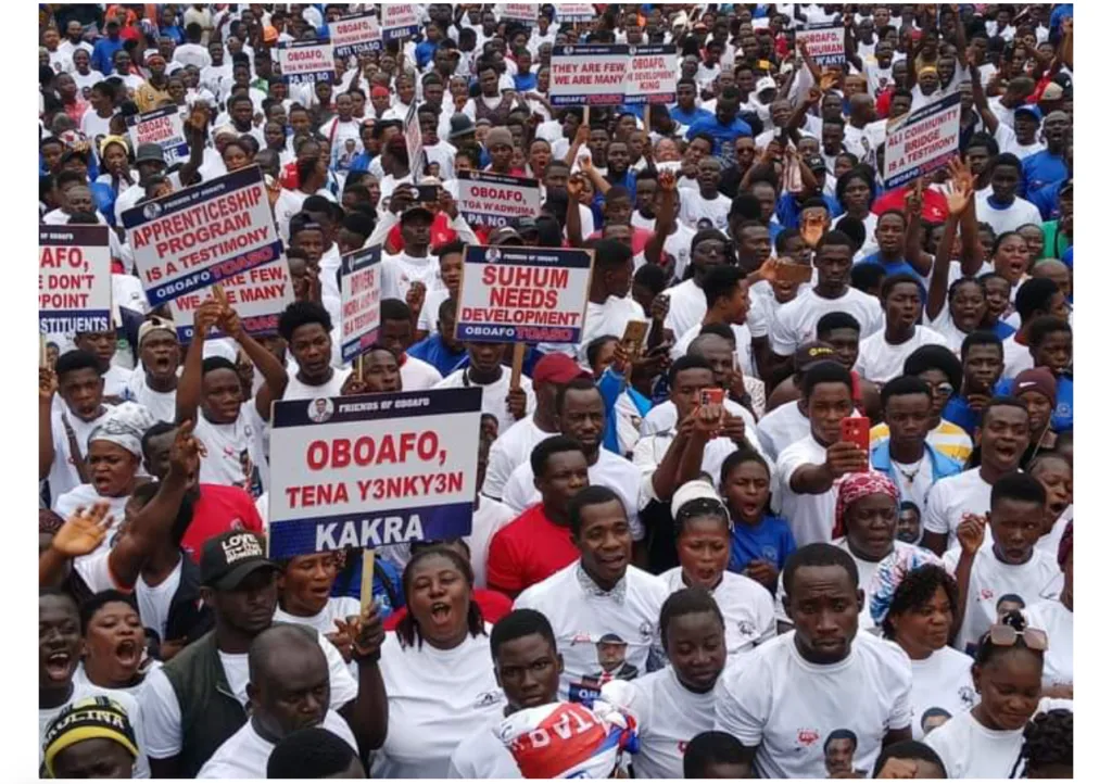 He officially launched his campaign featuring his posters and T-shirts with the slogan “Oboafo Toaso” (Oboafo Continue) among other inscriptions.