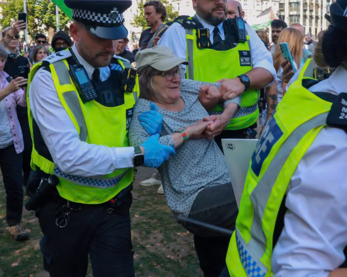Two women taking part in the action, one in her mid-70s, were arrested by police midway through their interview with the Guardian. One said of the turnout: “I think it’s great, people are absolutely sick of seeing genocide on their screens.”