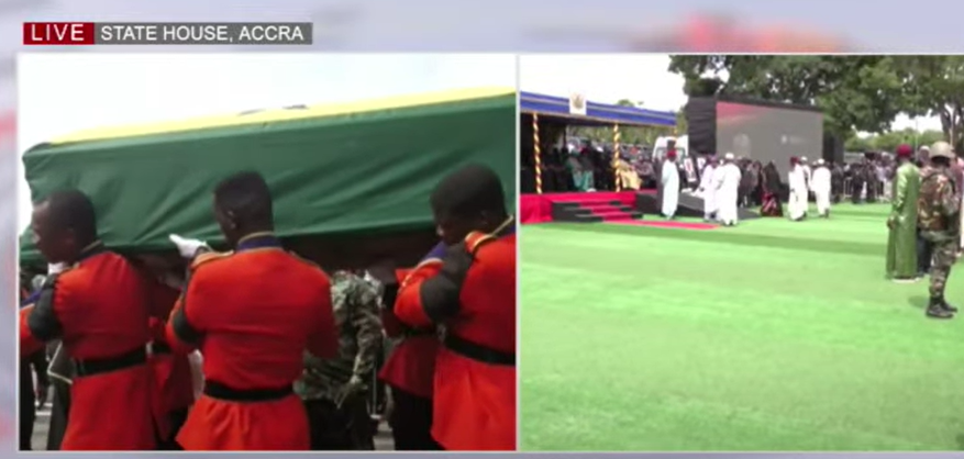 In line with Islamic tradition, Janazah prayers were held at the Forecourt of the State House in Accra, followed by interment at the Military Cemetery near Burma Camp.