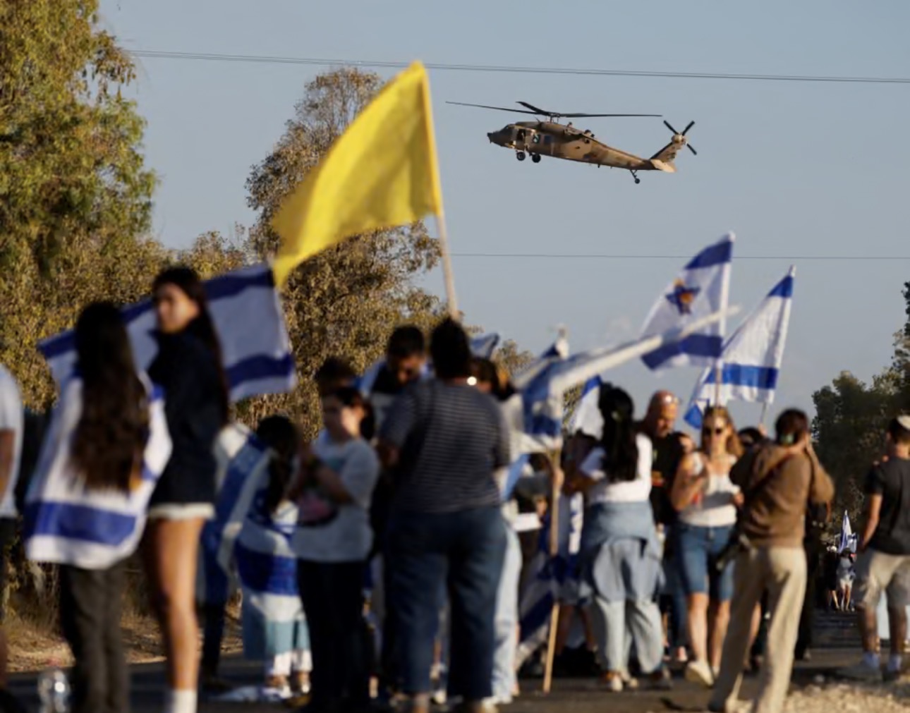 Tens of thousands of Israelis are watching the transfers at public screenings across the country, with a major event being held in Tel Aviv.