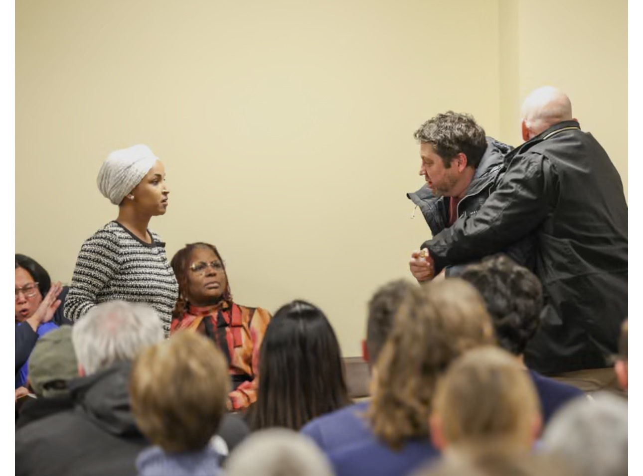 Omar, though visibly shaken, decided to continue the event on Tuesday, despite pleas from people who were attending to end the town hall for her safety. “I’ve survived war,” she told reporters after the event. “And I’m definitely going to survive intimidation and whatever these people think they can throw at me, because I’m built that way.”