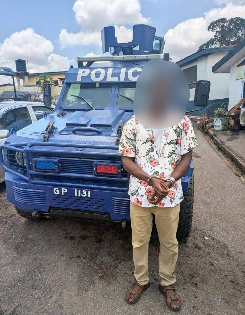 The Ghana Police Service in the Ashanti Region has arrested a young man, Ebenezer Frimpong, for allegedly attempting to steal a police armoured vehicle at Nkawie Market in a brazen daytime incident.